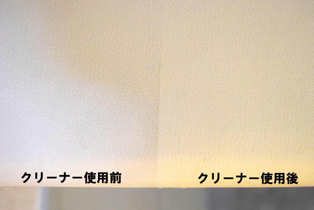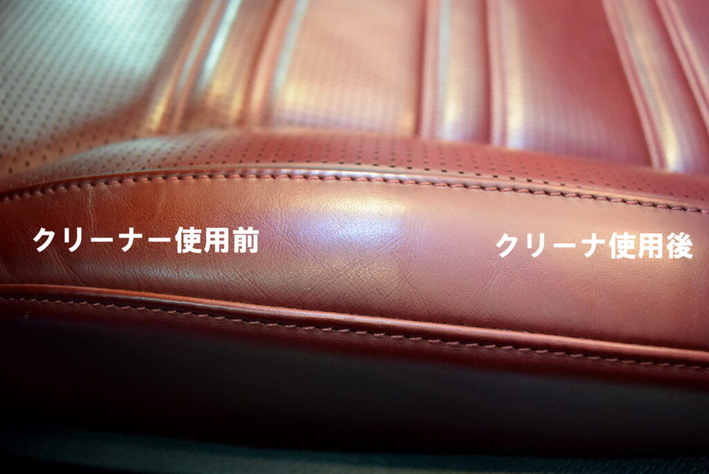 クリーニング前には油脂によりテカテカしていますが、クリーニング後はしっとりとした革本来の質感に戻ります。