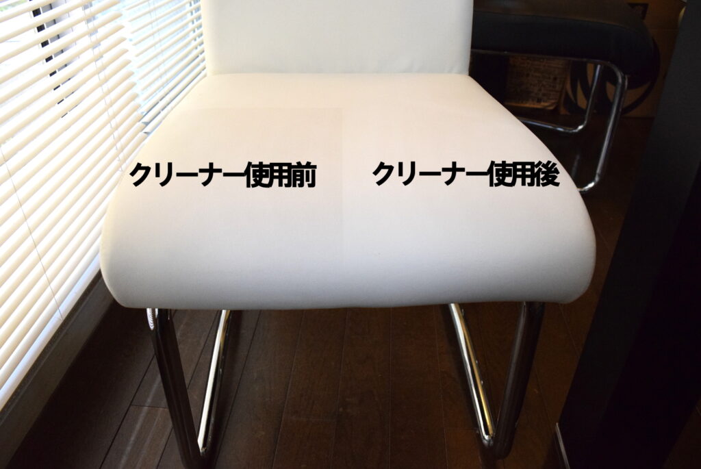 ▲椅子にもクリーニングをしてみると、一見すると全然綺麗だったのですが、クリーニングしてみると、その違いが明らかに。