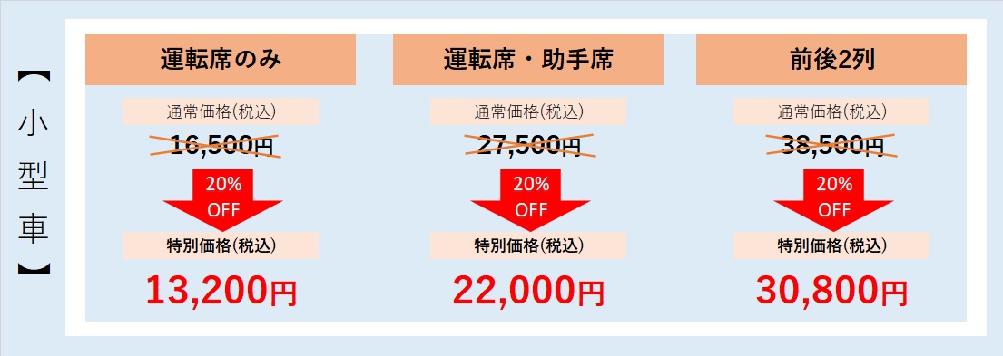 小型車(運転席/助手席) | 通常27,500円 ⇒ 特別22,000円 |