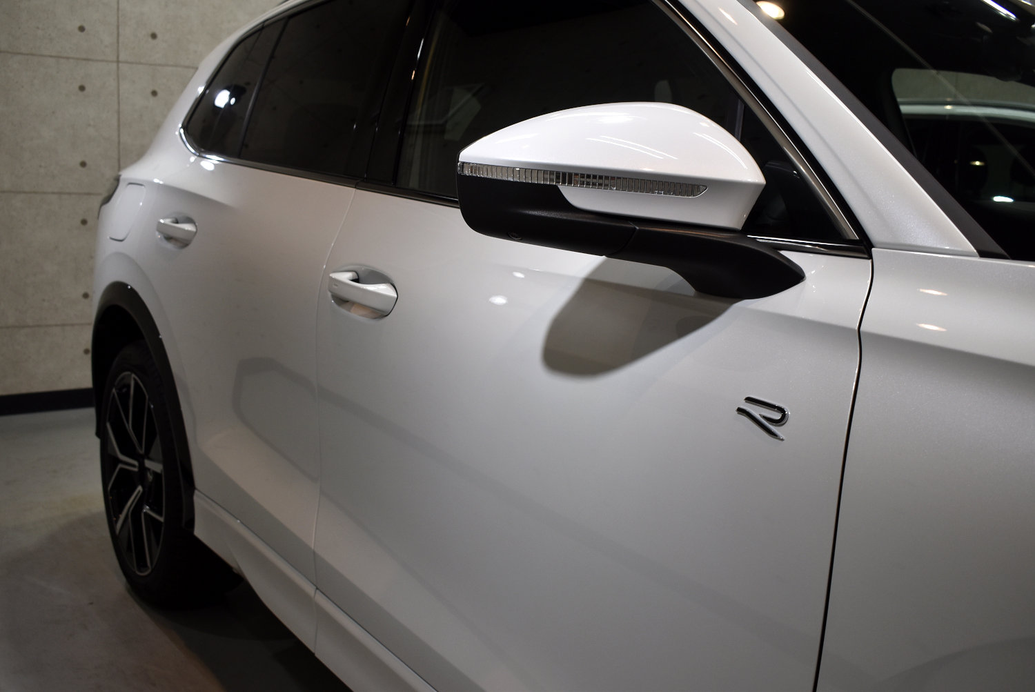 さて、今回ご用命を頂きましたガラスコーティングは【リボルト・プロ】です。2層の5年効果の完全硬化型のガラスコーティングです。コーティング剤は、リボルトグループにて独自に研究開発された、リボルトオリジナルの低分子・完全硬化型(濃度100%)です。リボルト・プロの低分子量ガラス被膜は、約2~4μmという圧倒的な膜厚を確保できております。磨きで対応しきれない深い傷などにもしっかりとガラス成分が入り込み傷を目立たなくする効果もあります。