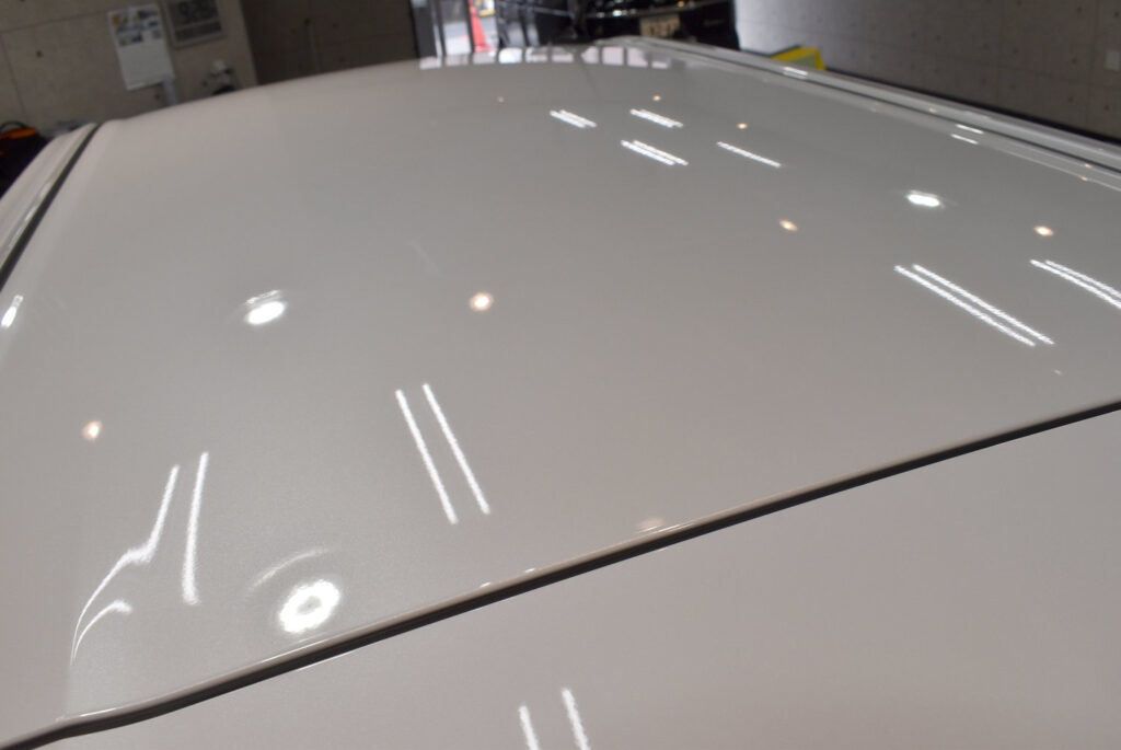 今回のような「新車」の塗装面でも磨きは必要です。「新車=綺麗」ではありません。少なからず新車特有の「曇り」「洗車傷」「保護シートの糊跡」など、下地処理なくして気付かない事があります。塗装面をやみくもに磨くのではなく、極力塗装面に負荷を与えないようにして「必要最低限な磨きで最大限の美しさ」を作り出します。リボルトでは下地処理に全体作業の約8割以上の時間を費やし、ガラスコーティングの仕上がりの決め手となる下地処理をとても重視しております。