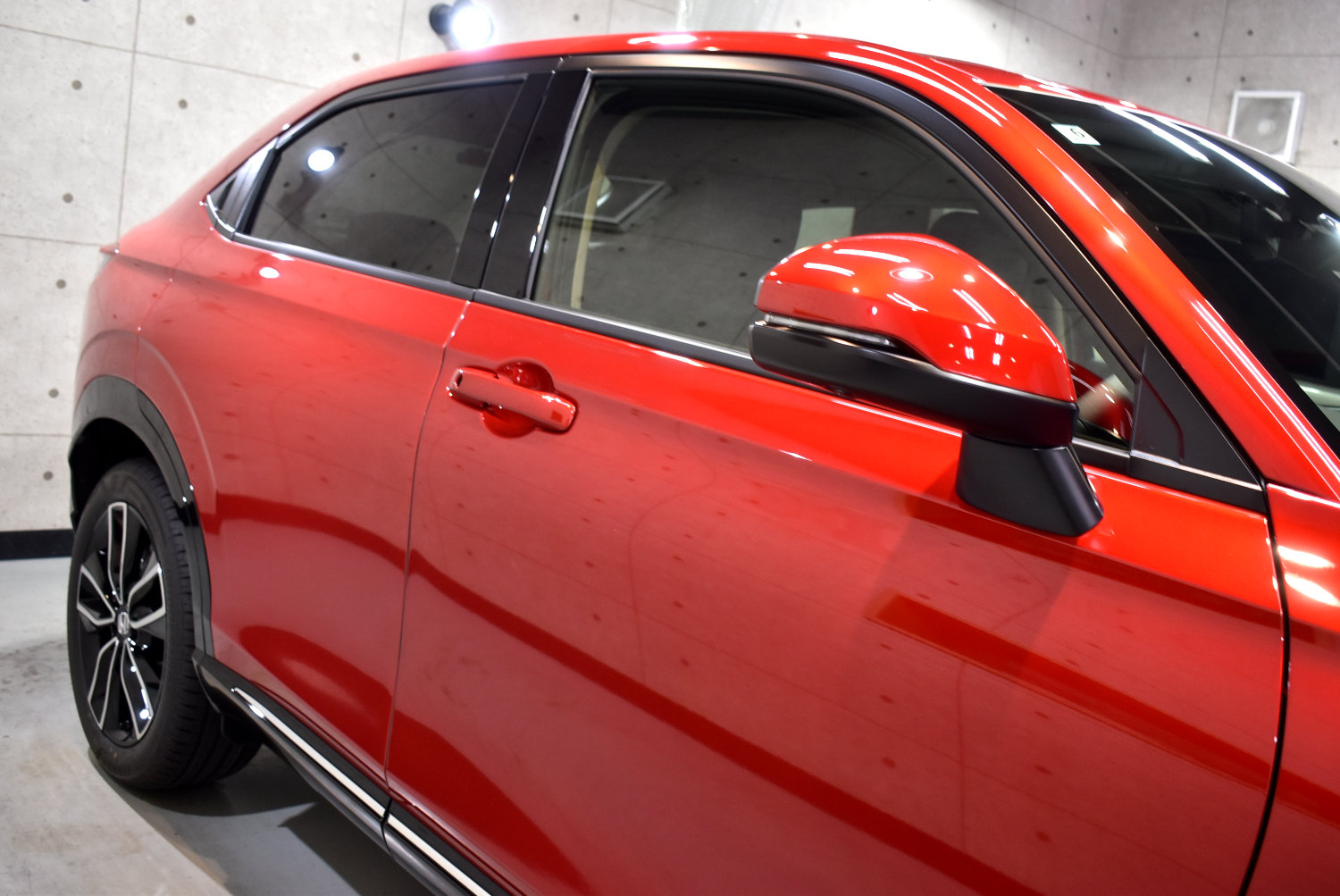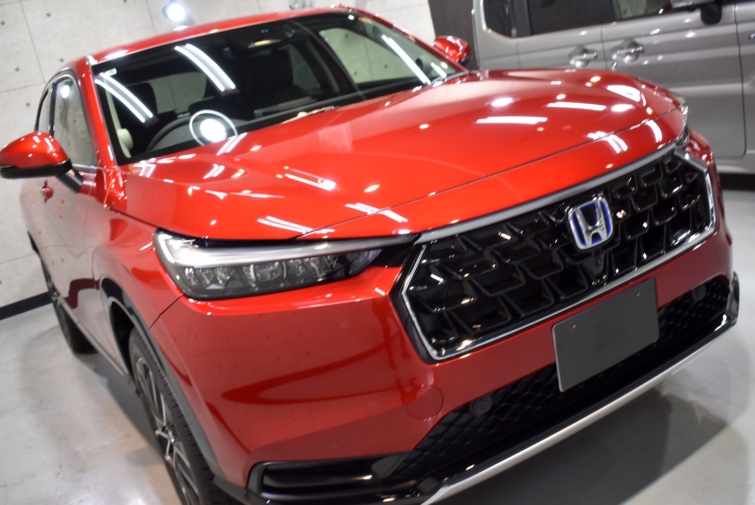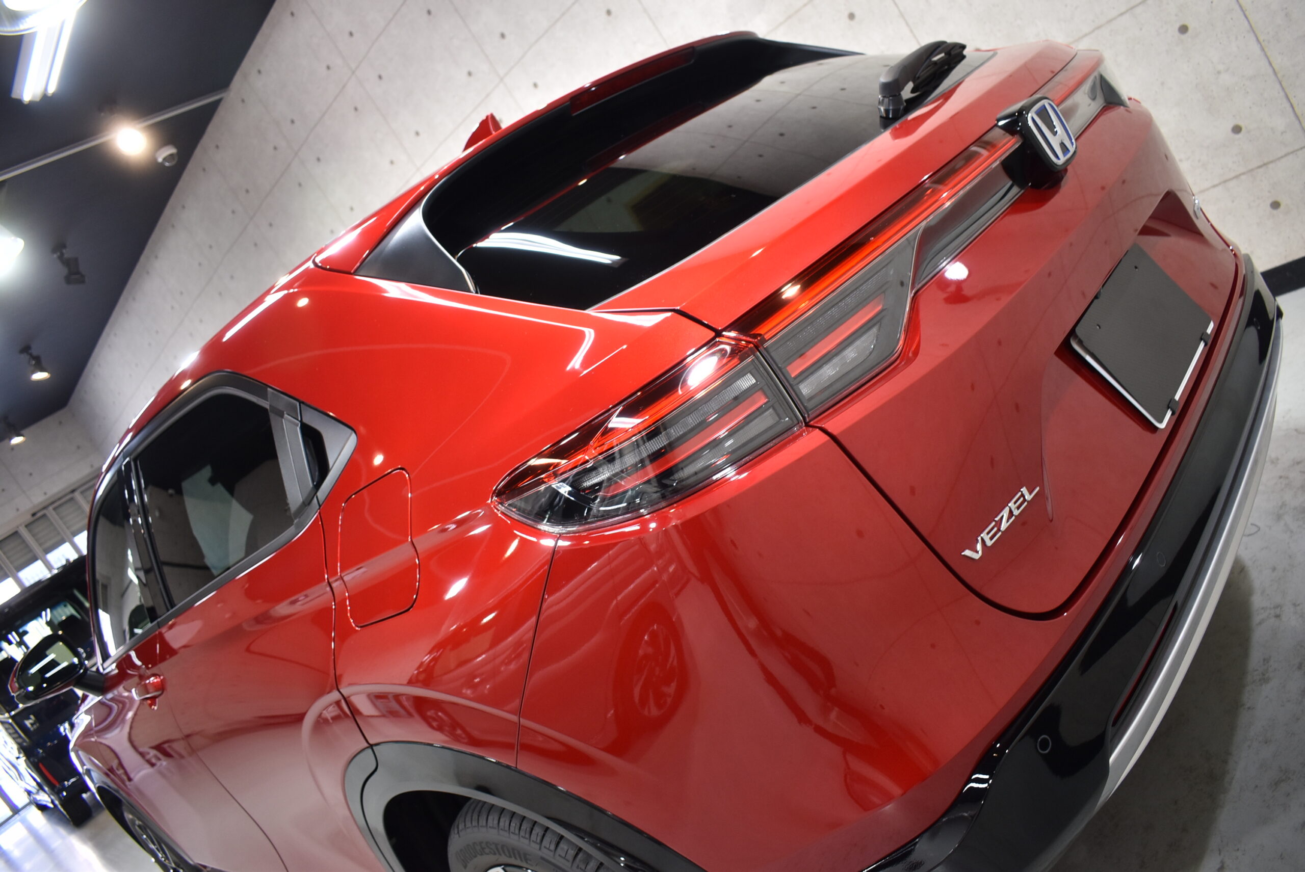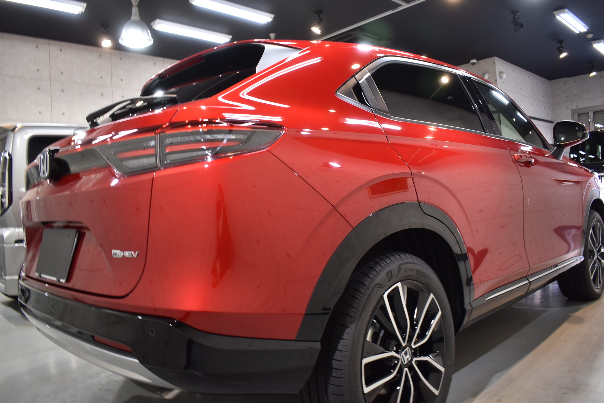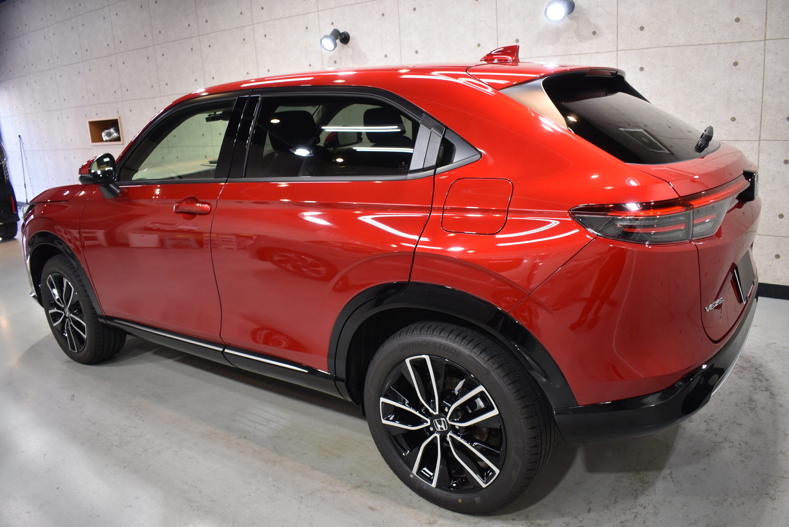 今回施工したホンダ・ヴェゼルは、下地処理からコーティングまで徹底的に仕上げることで、新車以上の輝きを実現しました。SUV特有の力強さと高級感を両立させたボディに、「リボルト・プロ」の深い艶が加わり、オーナー様にも大変ご満足いただきました。