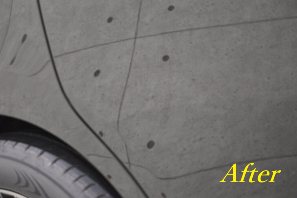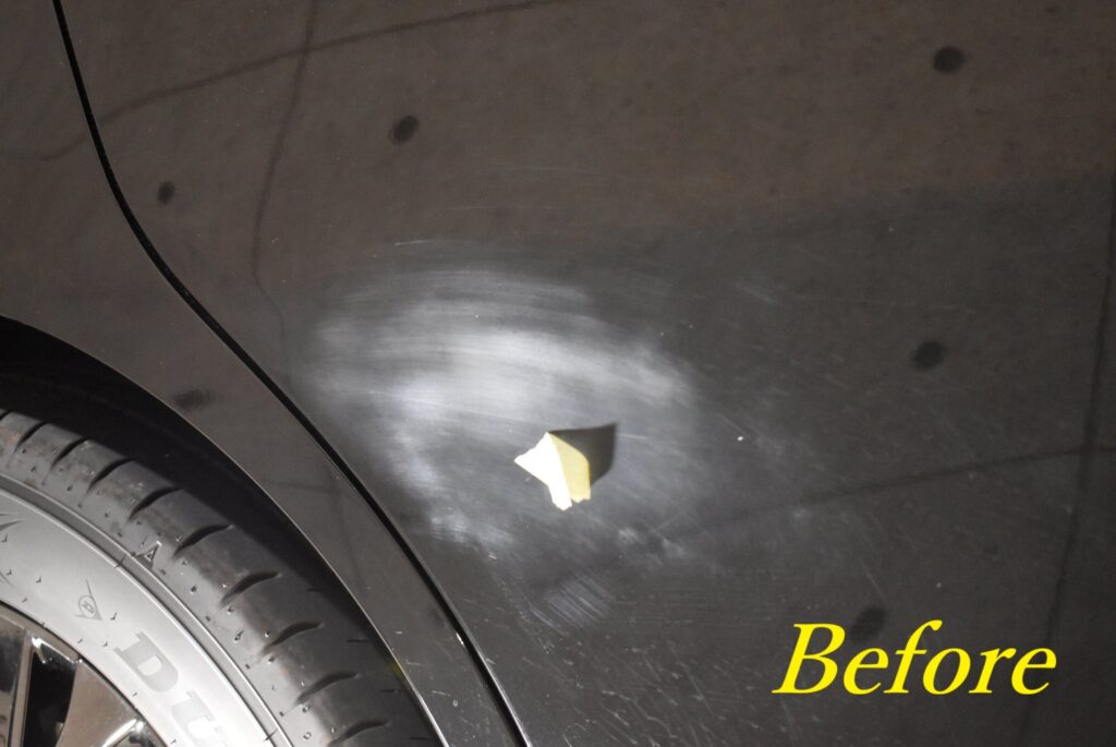 ▲こちらはオーナー様が手磨きでコンパウンド処理した跡