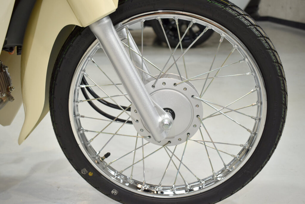 スーパーカブの特徴でもあるスポークホイールにも、細部までしっかりと標準施工いたしました。金属パーツも防錆・防汚効果が向上し、日常的なメンテナンスが非常に楽になります。