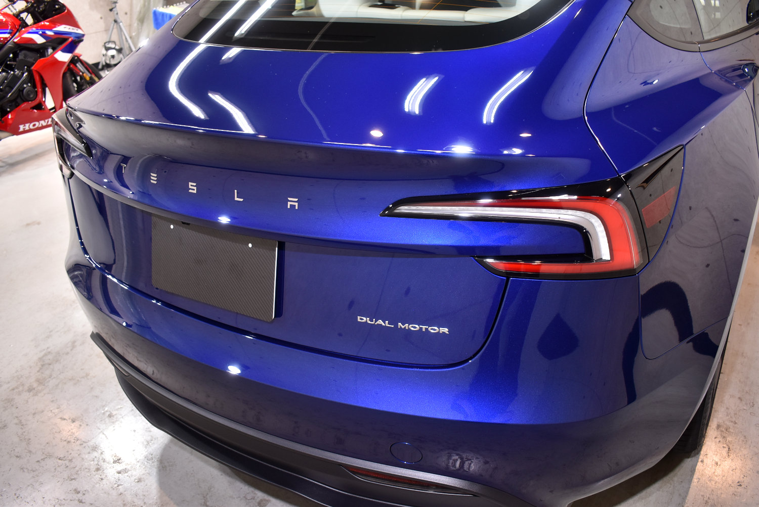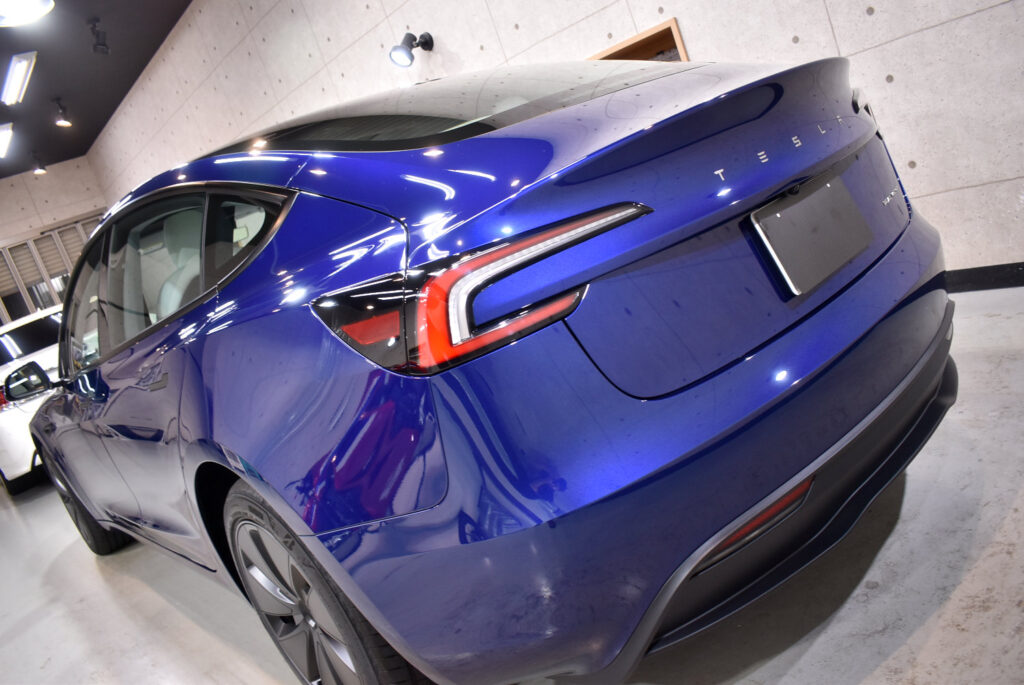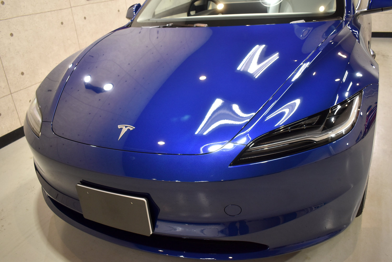 また、テスラのように柔らかい塗装面にも柔軟に追従するため、長期間にわたって美しい艶と防護性能を維持します。ディープブルーの塗装がより濃く、しっとりとした濡れ艶をまとったような仕上がりになりました。
