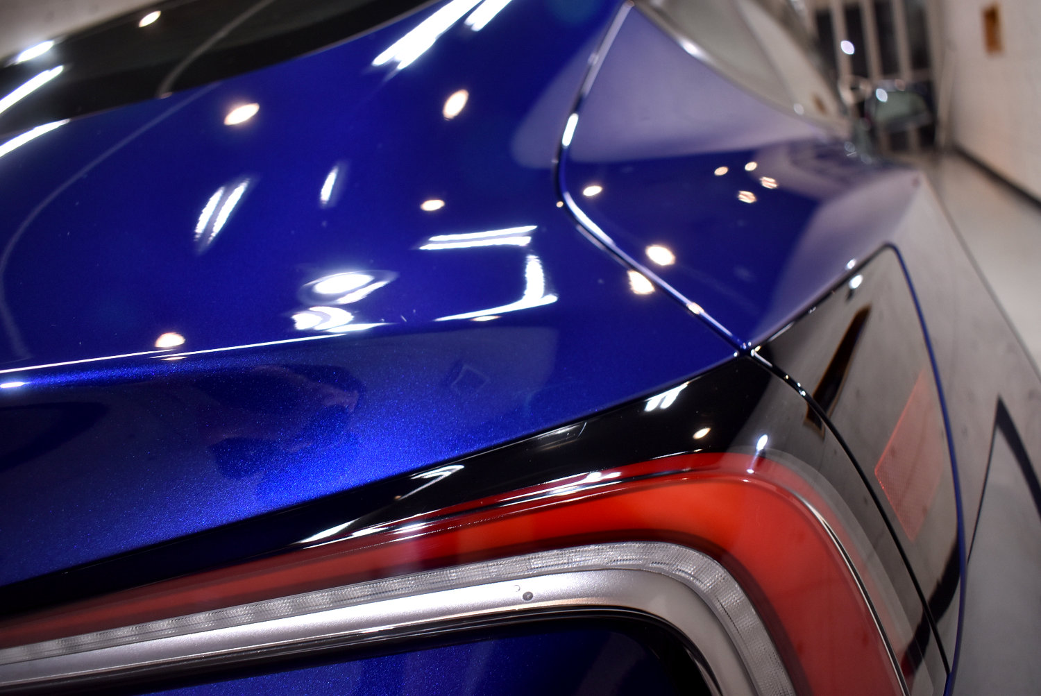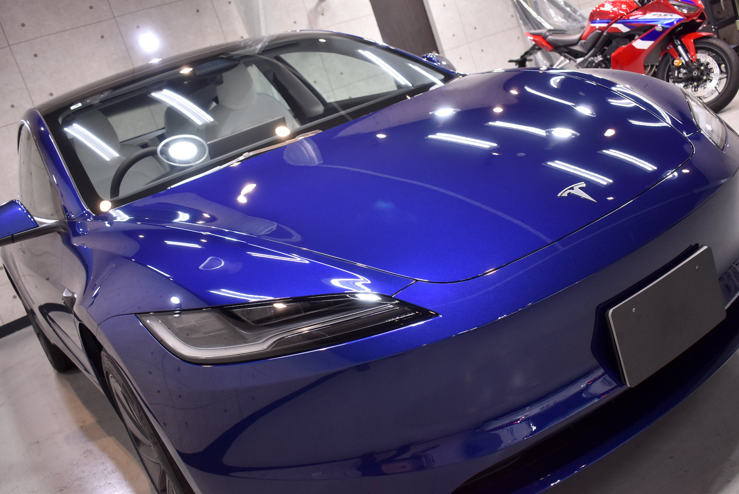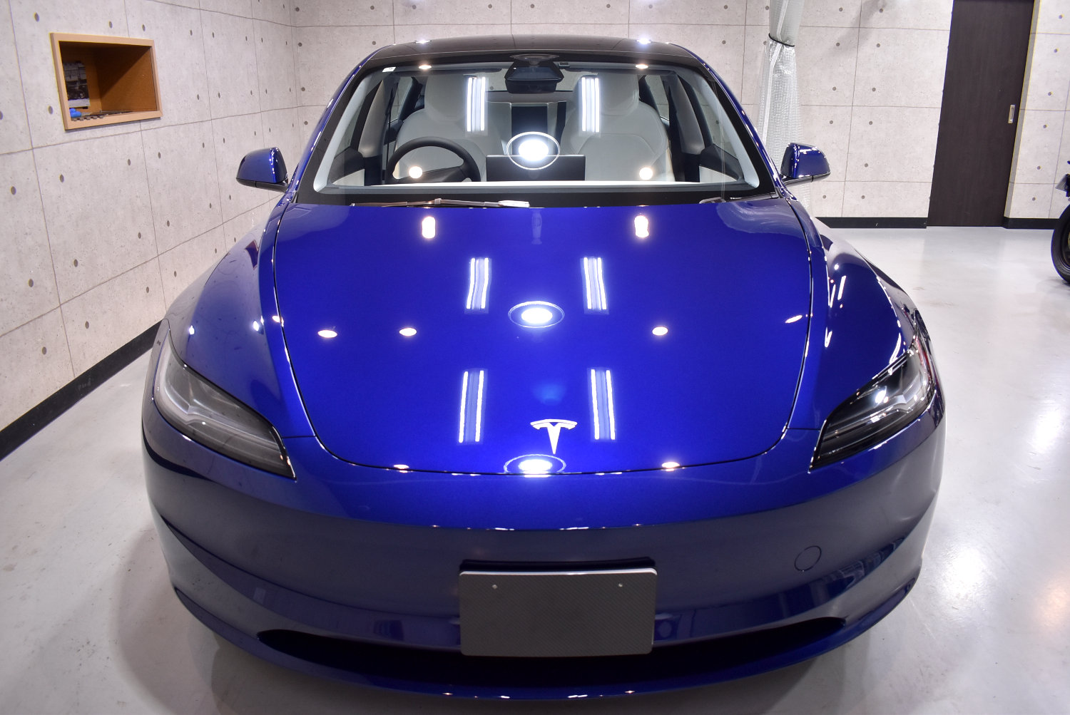 また、テスラのように柔らかい塗装面にも柔軟に追従するため、長期間にわたって美しい艶と防護性能を維持します。ディープブルーの塗装がより濃く、しっとりとした濡れ艶をまとったような仕上がりになりました。