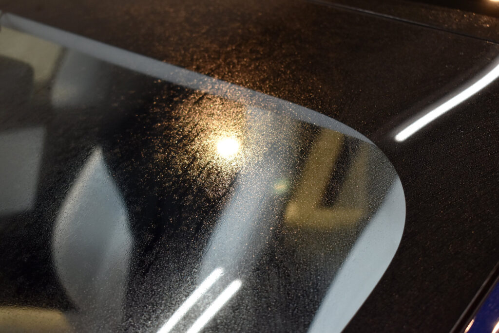 これをそのままコーティングしてしまうと、定着不良や艶ムラの原因になるため、まずは専用溶剤で丁寧に除去。その後、塗装状態を1パネルずつ確認しながら、リボルト独自の高度な下地処理技術【Revolt Adjust System(リボルト アジャスト システム)】で塗装面を整えていきます。