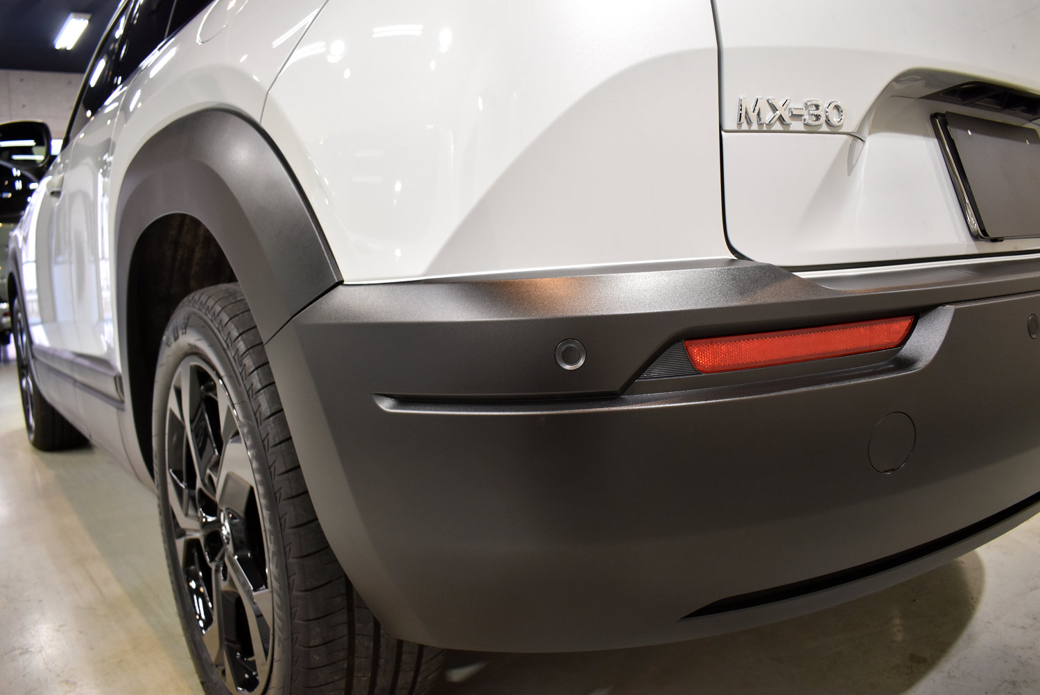 という“若返り効果”をしっかりと引き出すことができました。フェンダーやバンパー下部の黒さが戻ることで、MX-30本来のスポーティで軽快な雰囲気が一段と際立ちます。