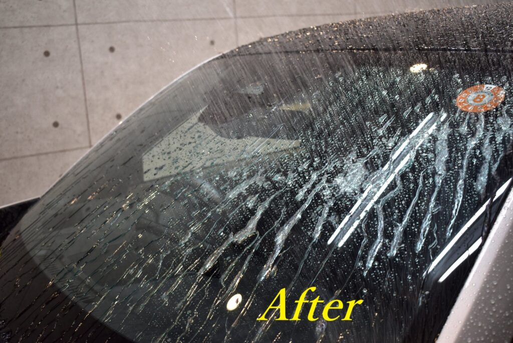 「撥水剤を塗るだけ」ではなく、まずはガラス面をリセットしてから撥水被膜を形成することで、