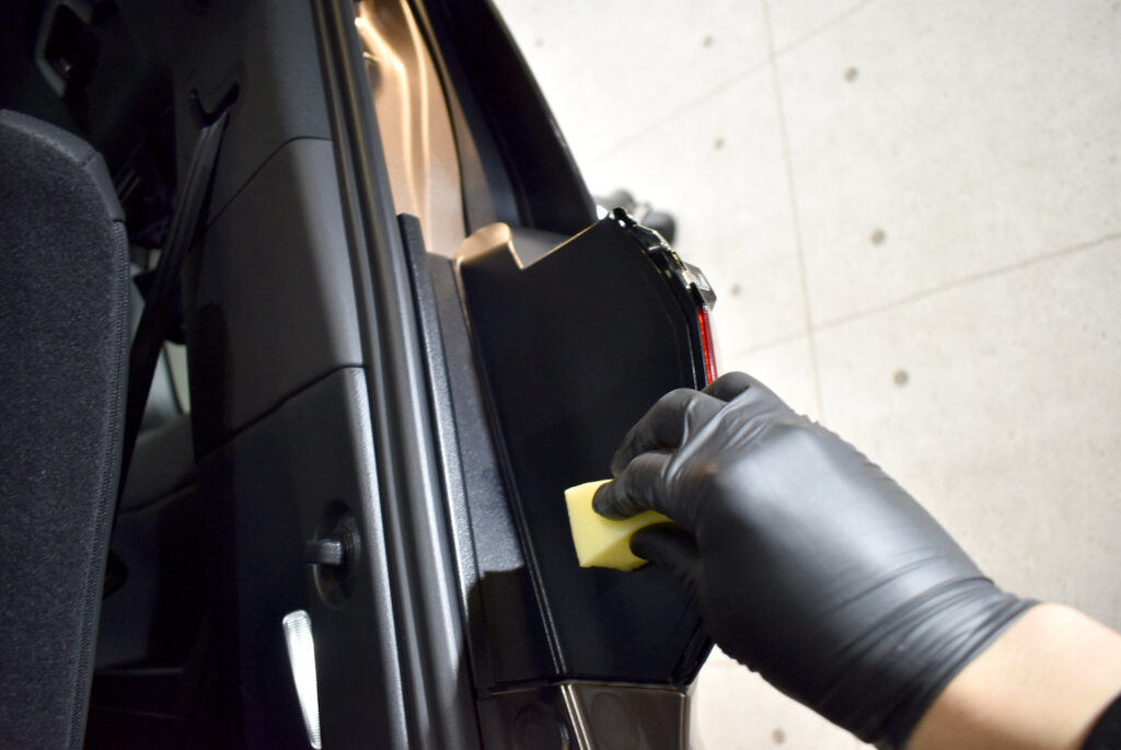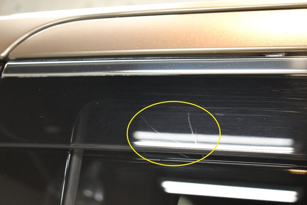 「まだ新しいから綺麗だろう」と思われがちですが、実は高年式車こそ磨き専門店の下地処理が重要になります。スクラッチ(洗車)傷はボディ以外にも、ドアバイザーやピアノブラック、ボディ全体にも見受けられました。