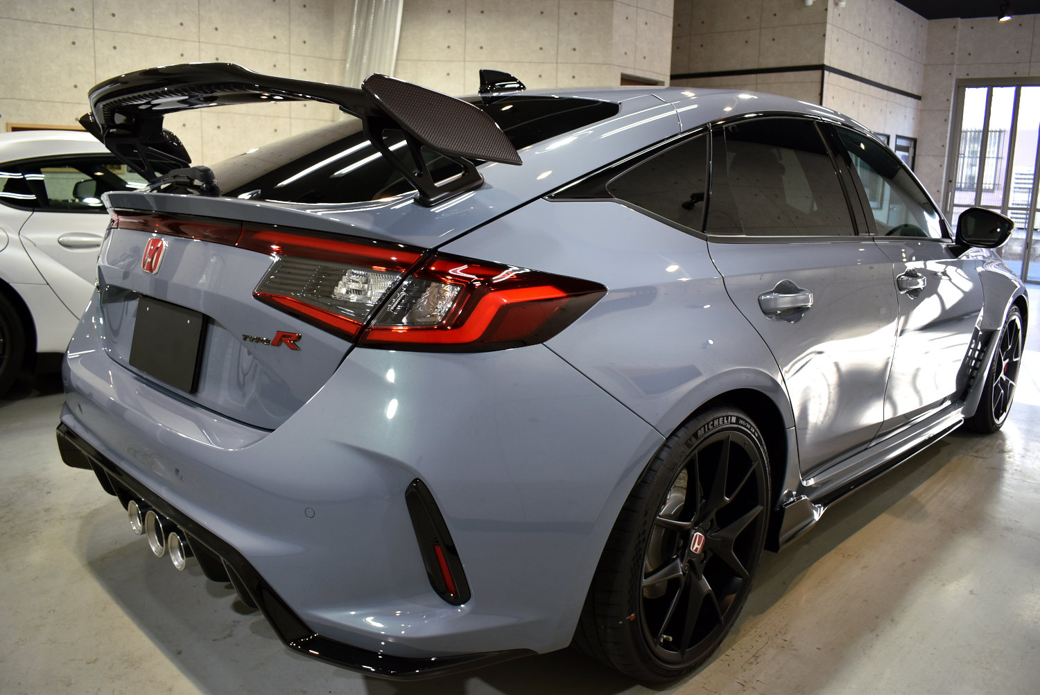 埼玉県伊奈町のカーコーティング専門店「リボルト埼玉北」です。 今回は、ホンダが誇るピュアスポーツモデル 「シビック タイプR(FL5)」の新車がご入庫いただきました。 言わずと知れた、日本を代表するハイパフォーマンスFFスポーツ。 現在はその人気の高さから長期間の受注停止が続くほどの人気モデルとなっています。 今回のオーナー様も、ご契約から約2年半という長い時間を経て、ようやく納車されたとのこと。 待ちに待った特別な一台を、納車直後に当店へご入庫いただきました。 その大切な愛車を、リボルト最高峰のセラミックコーティング 「リボルトプロ・エクストリーム」で丁寧に仕上げさせていただきました。メーカー:ホンダ 車種:シビック タイプR 登録:2026年新車 カラー:ソニックグレーパール(NH877P) 【施工内容】 セラミックコーティング(リボルトプロ・エクストリーム) ホイールコーティング(リボルトプロ・エクストリーム) 窓ガラス撥水加工(全面) カーフィルム(運転席・助手席) ◆ シビック タイプRの魅力 現行型FL5型シビック タイプRは、歴代タイプRのDNAを受け継ぎながら、さらに洗練された一台です。 最大の魅力は、やはり2.0L VTECターボ × 6速MTという純粋なドライバーズカーであること。 昨今、スポーツカーでもAT化が進む中で、MTのみという潔い設定は、まさにタイプRの哲学そのものと言えるでしょう。 まさに「究極のFFスポーツ」と言える一台です。 今回のボディカラーは、ホンダ車の中でも人気の高いソニックグレーパール。 近年のホンダ車を象徴するカラーの一つで、光の当たり方によって表情が変わる美しいメタリックカラーです。 さらに今回の車両には、オーナー様こだわりのオプションテールゲートスポイラー(ウイングタイプ)が装着されています。 標準スポイラーよりも存在感があり、リアビューの迫力をさらに高めるスポーティなデザイン。 タイプRらしいレーシングテイストを強く感じさせる装備で、後ろ姿の印象を大きく変えてくれる人気オプションです。