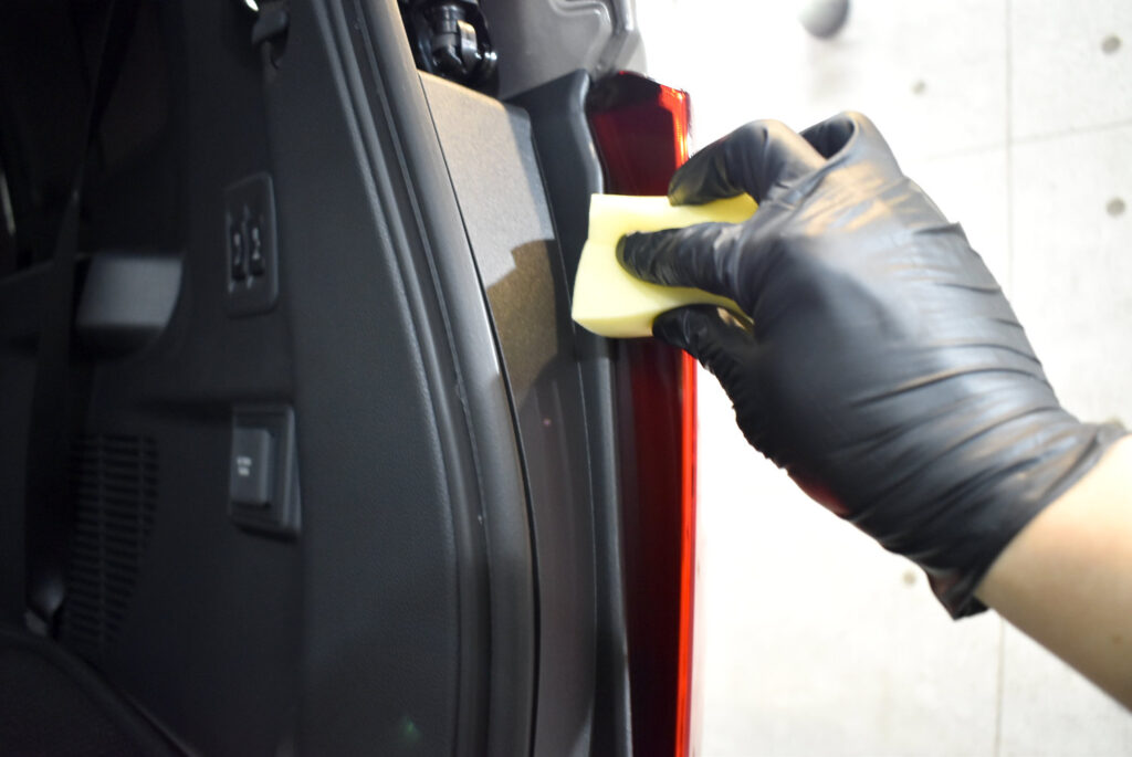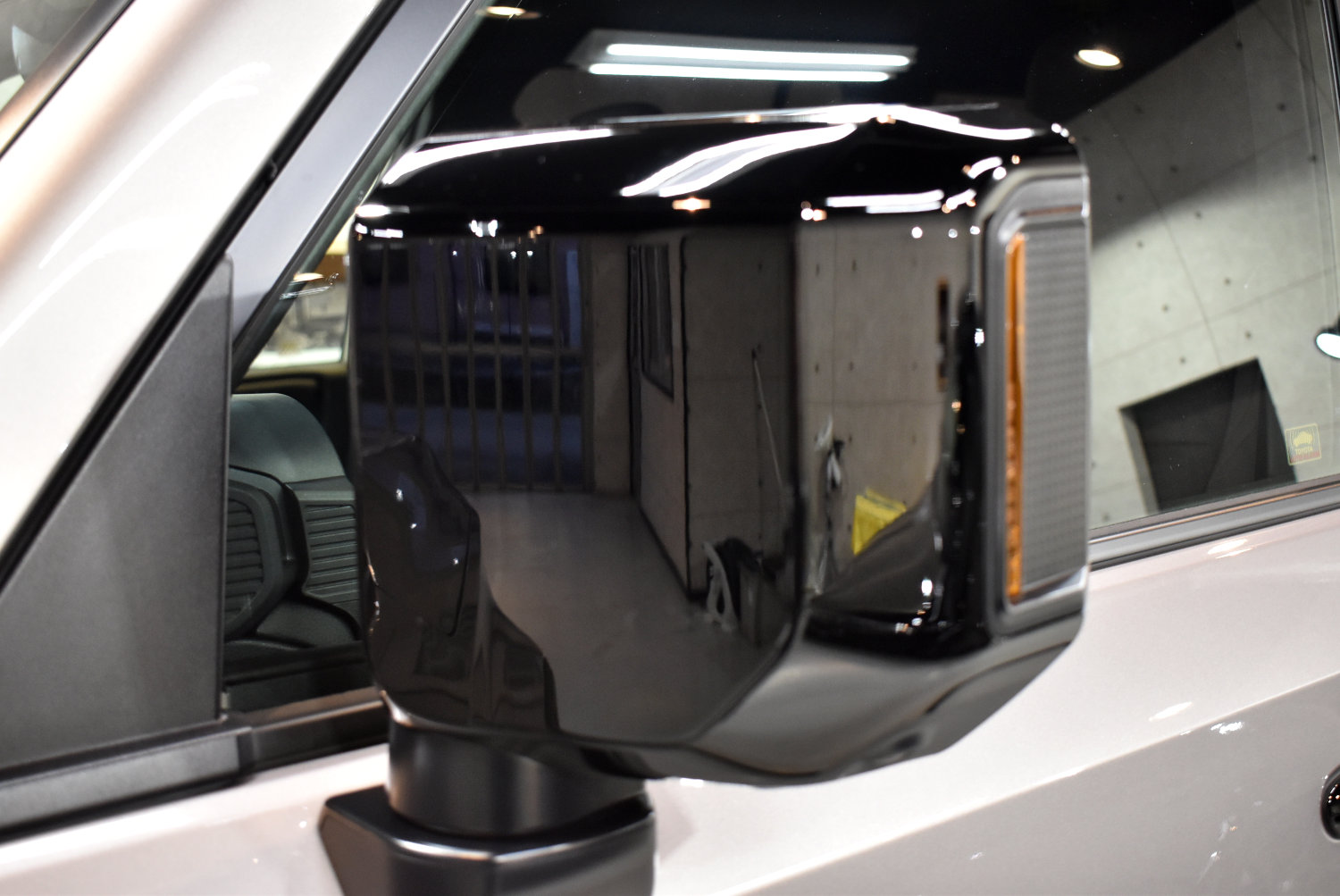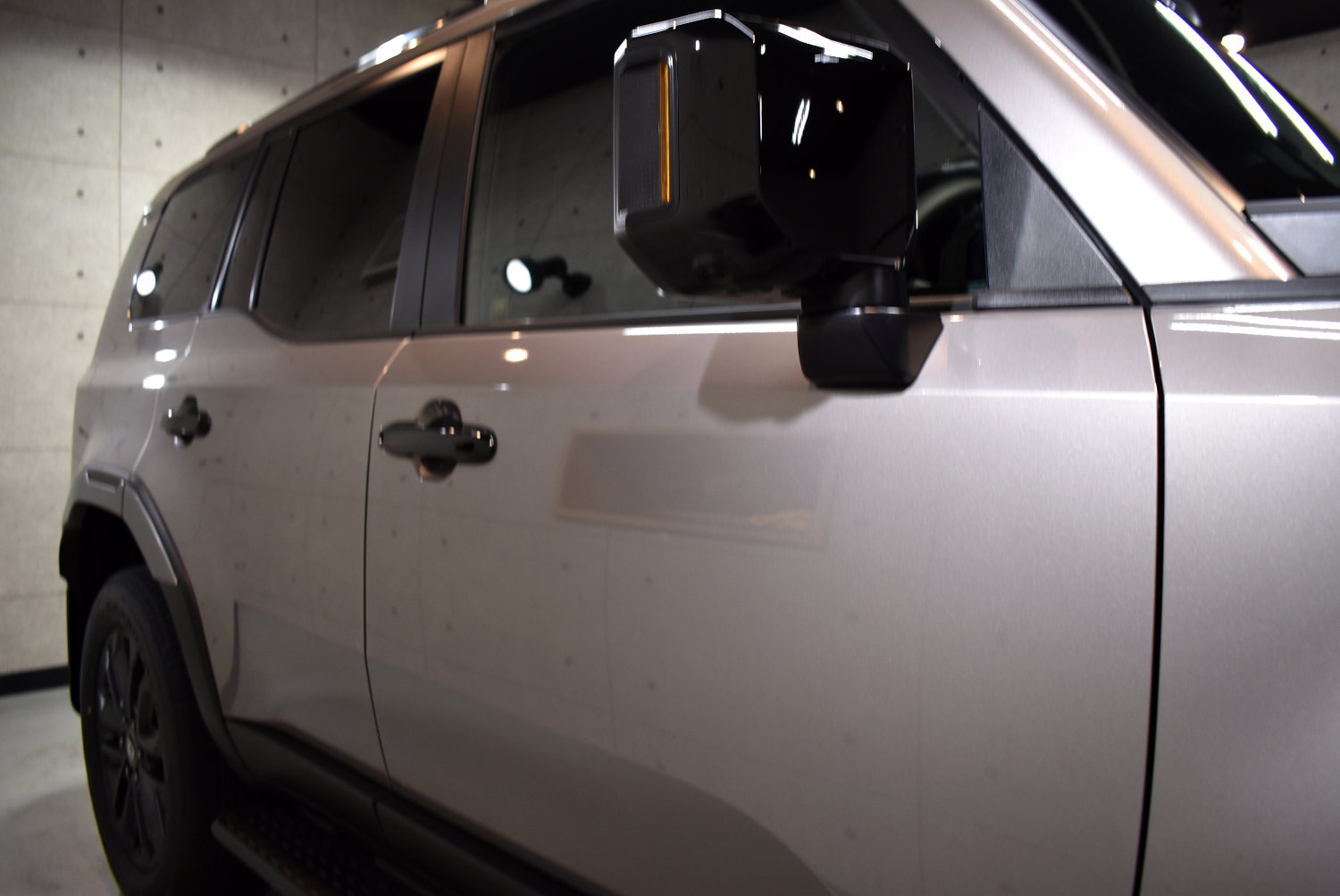 下地処理にて最高の状態にリセットした塗装面を保護するのは リボルトグループ最高峰のセラミックコーティング 【リボルトプロ・エクストリーム】です。 低分子・完全硬化型による圧倒的な膜厚感は ブロンズメタリックの質感をより強調し、まるで濡れているかの ような「ヌルテカ」の仕上がりを実現します。 また、施工後のボディに触れた際の質感は驚くほど「ツルツル」。 この滑らかさが摩擦抵抗を減らし 防汚性能を飛躍的に高めてくれます。◆ リボルトの標準施工(細部へのこだわり) リボルトのコーティングは、単にボディの塗装面を塗るだけではありません。 ランドクルーザー250のようなSUV車には欠かせない 以下の箇所も【標準施工】範囲に含まれています。 未塗装樹脂パーツ: SUVに多用されるフェンダーやバンパーの黒い樹脂部分。 白濁を防ぎ、黒々とした質感を長期維持します。 ステップ周り・ドア開口部: 乗り降りの際に汚れやすいステップ部分も保護。 給油口の内側: 普段は見えない場所ですが、セルフ給油時にガソリンが 付着しやすい箇所も念入りに施工。 「どこまで施工するの?」という疑問に対し 私たちは「見えない部分まで徹底的に」お応えします。